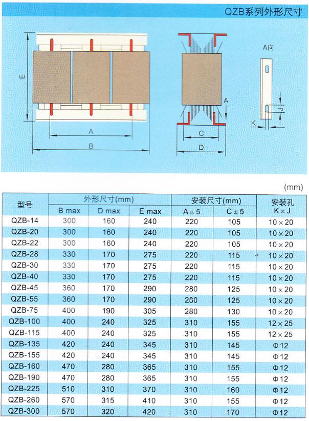 QZB系列自耦减压变压器是自耦变压器的一种,适用于交流50Hz,额定电压660V以下,额定输出功率400kW及以下的三相鼠笼型感应电动机,作不频繁操作条件下的降压起动,利用变压器降压的特点,降低电动机的起动电流,以改善电动机起动时对输电网络的影响。
