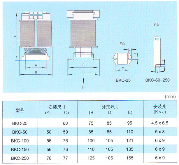 BKC系列控制变压器适用于50-60HZ的交流电路中,变压器规格规范,作为机床和机械设备(特别是纺织设备)中的控制电源、局部照明及指示灯电源。