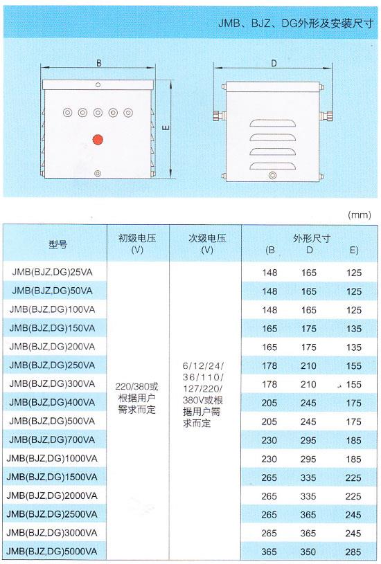 JMB、BJZ、DG系列照明变压器是无锡变压器